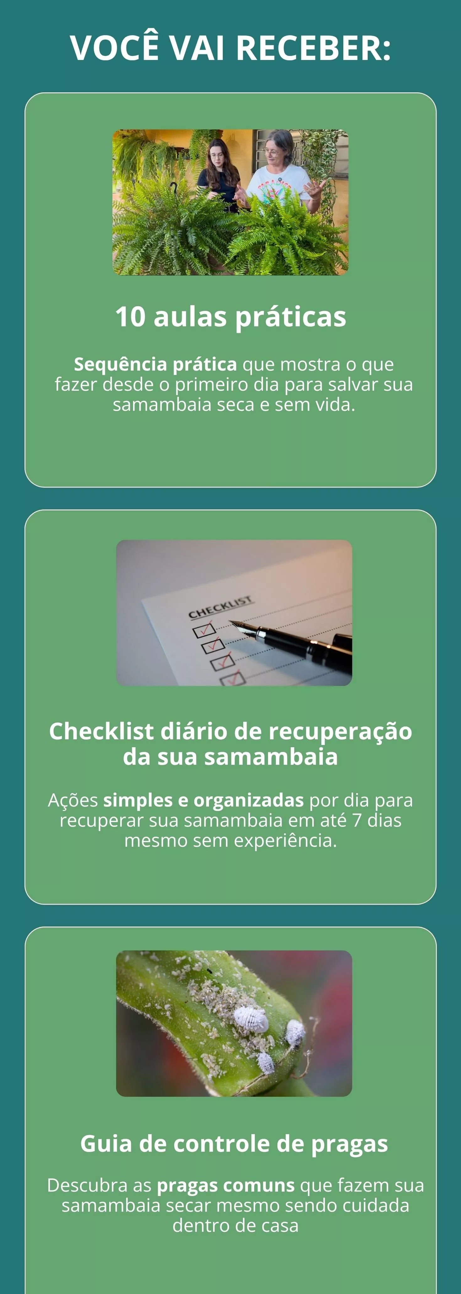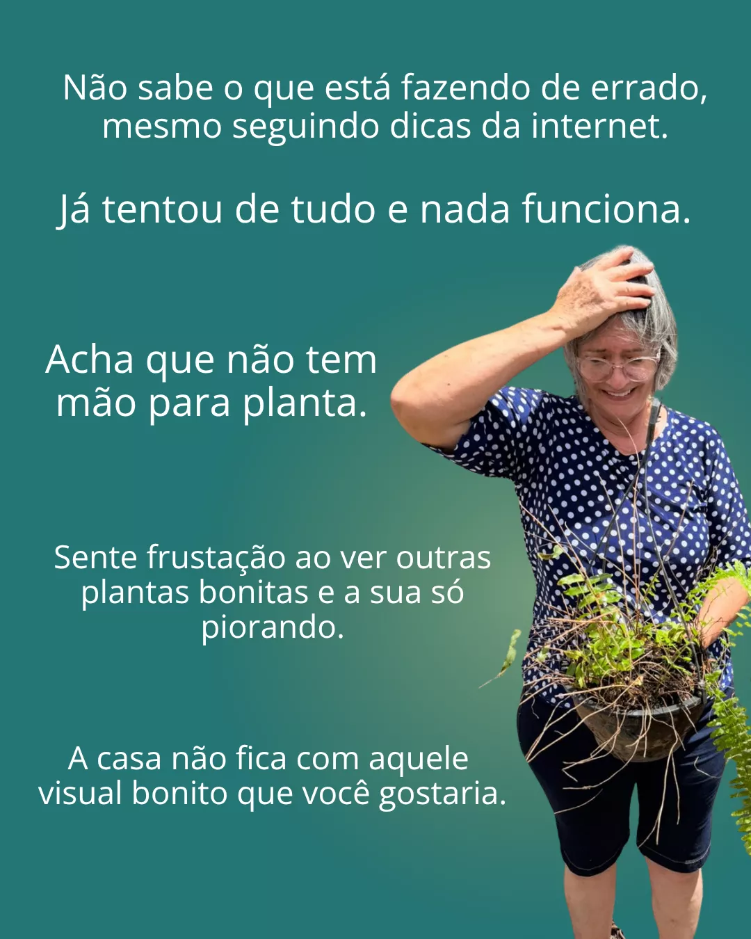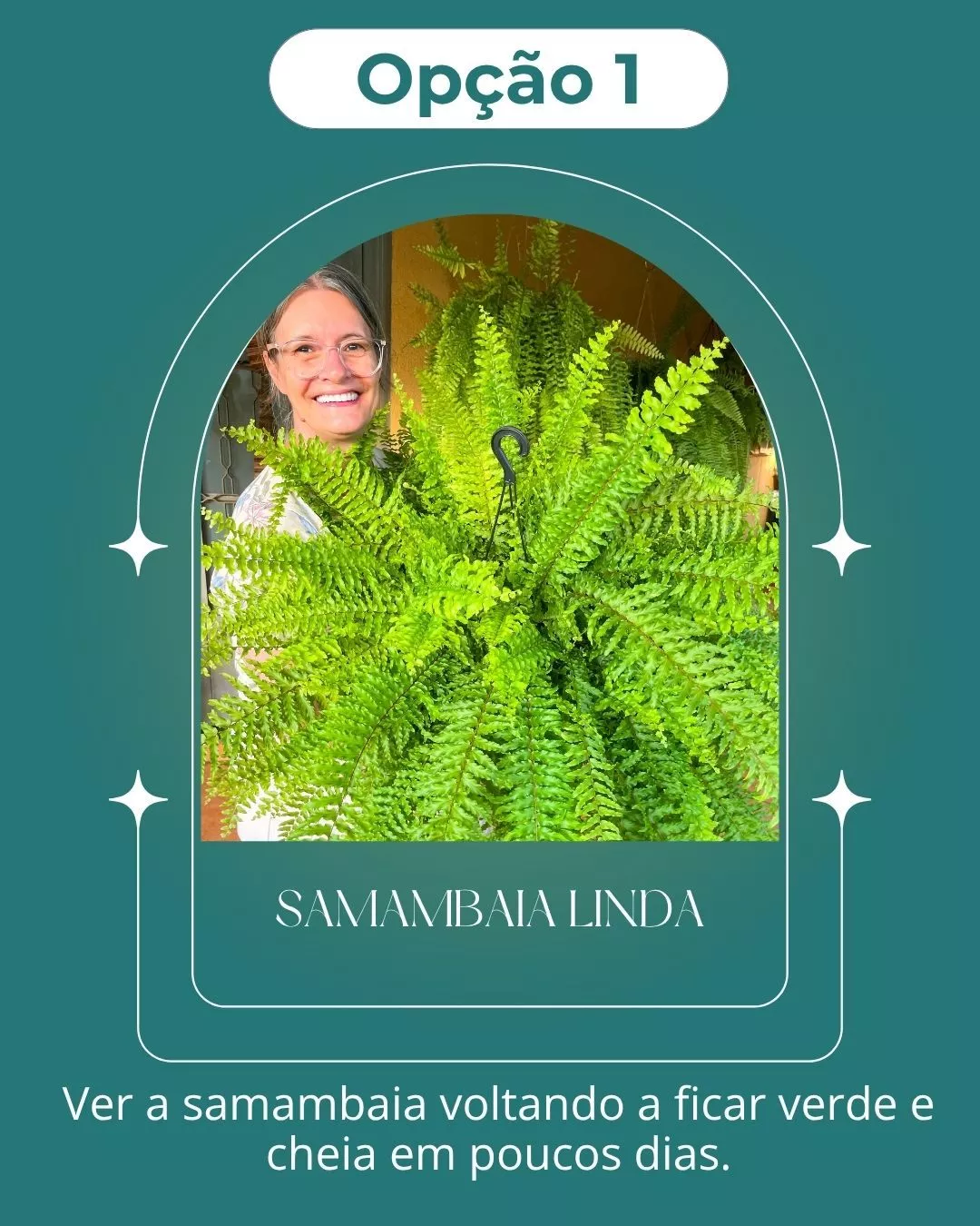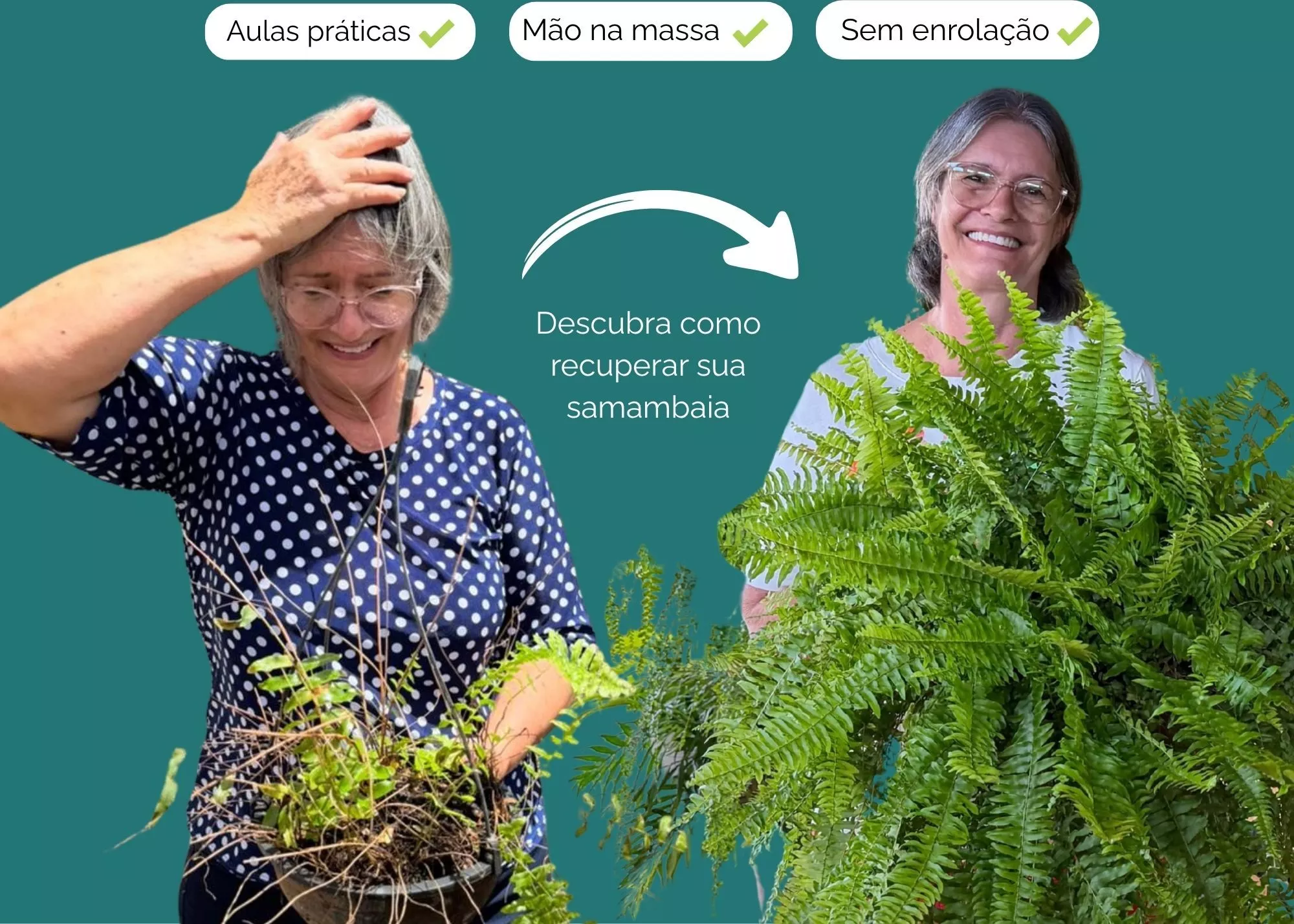 Ajudar você a olhar para sua samambaia e ver ela verde, cheia e saudável novamente.