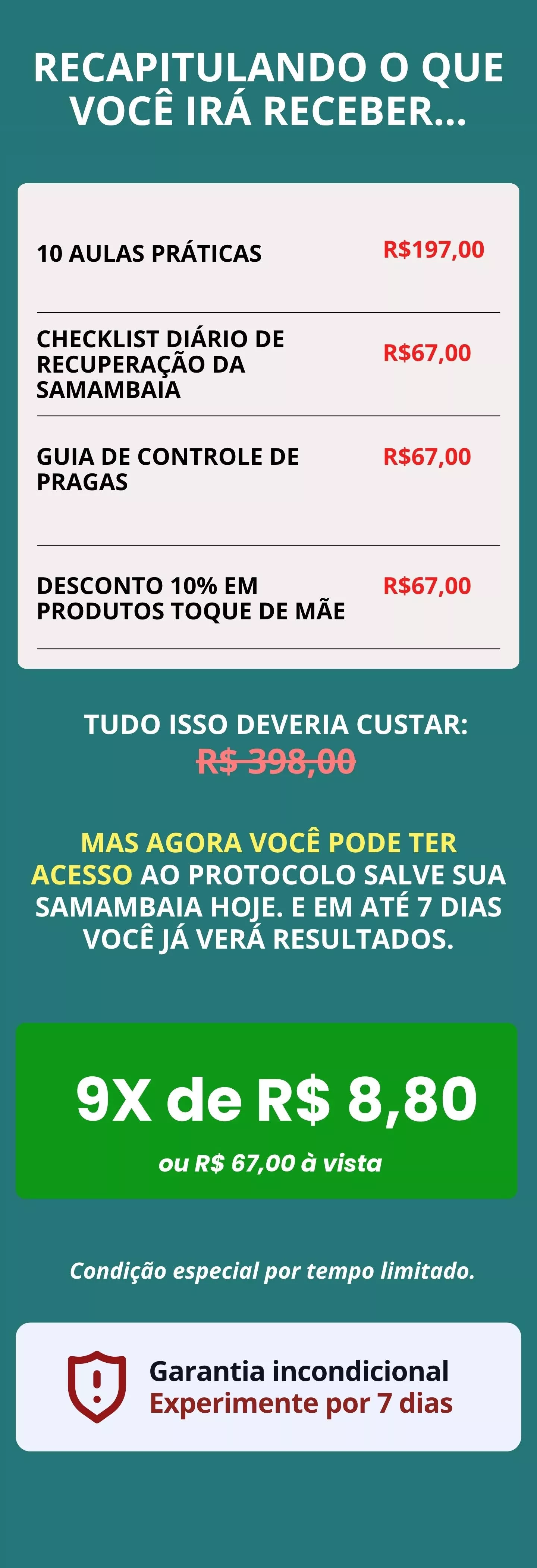 Você tem garantia incondicional por 7 dias.